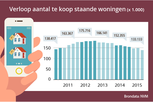 Halverwege het eerste kwartaal van dit jaar boden NVM-makelaars 141.348 huizen aan. Dit aanbod is inmiddels gedaald tot 133.133. Hierdoor heb je als koper minder keus bij de jacht naar de ideale woning. Als we het aanbod van alle makelaars in Nederland meenemen (niet alleen van de NVM), kan iedere koper momenteel kiezen uit circa 14 woningen.