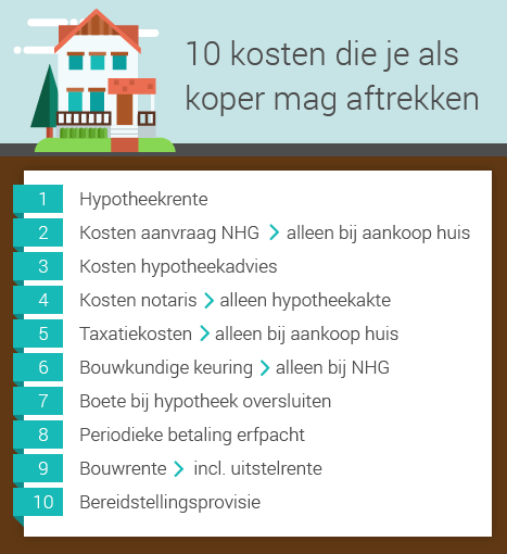 Let op: de kosten voor het aanvragen van NHG zijn alleen aftrekbaar bij het kopen van een huis, niet bij het oversluiten de hypotheek.