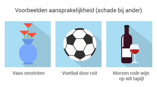 Bij aansprakelijkheid gaat het om (letsel)schade die jij veroorzaakt bij anderen. Dat is vaak iets kleins. Je stoot bij je vrienden de porseleinen vaas om bijvoorbeeld. Of je kind schiet een voetbal door een ruit. Kleine ongelukjes waarbij de materiële schade meevalt.