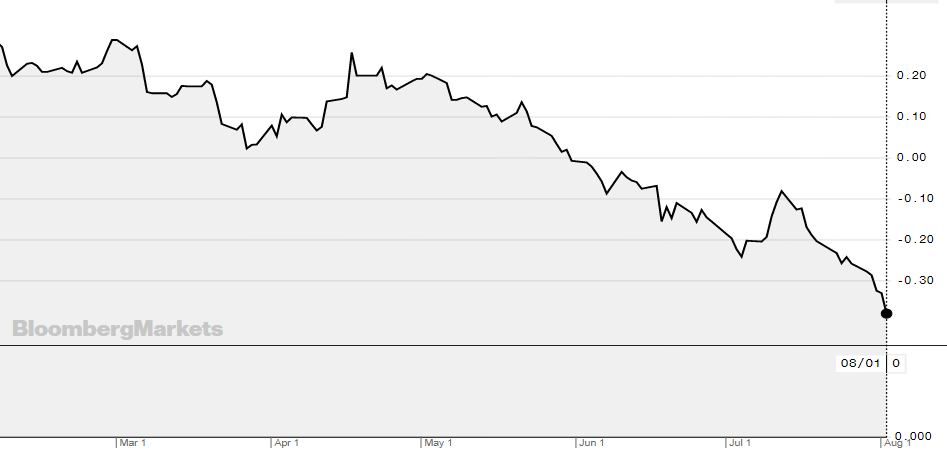 De rente op een Nederlandse staatsobligatie (met een looptijd van tien jaar) bedraagt -0,38 procent.