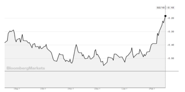 Een indicatie voor de richting van de hypotheekrente is de rente op Nederlandse staatsobligaties. Dit zijn leningen die de overheid uitgeeft. De rente hierop zit stevig in de lift. Begin van dit jaar moest je als investeerder in een dergelijke obligatie (die tien jaar loopt) nog bijbetalen als je geld bij de overheid wilden parkeren. De rente bedroeg begin januari namelijk - 0,50. Inmiddels schommelt deze rente op 0,20. Alsnog geen vetpot maar in verhouding een forse stijging.