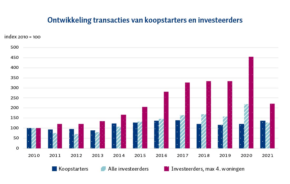 De aangepaste overdrachtsbelasting lijkt effect te hebben. Nu er minder woningen voor de verhuur gekocht worden, ontstaat er op de woningmarkt meer ruimte voor koopstarters. Deze groep kocht in 2021 dan ook meer woningen ten opzichte van het jaar ervoor.
